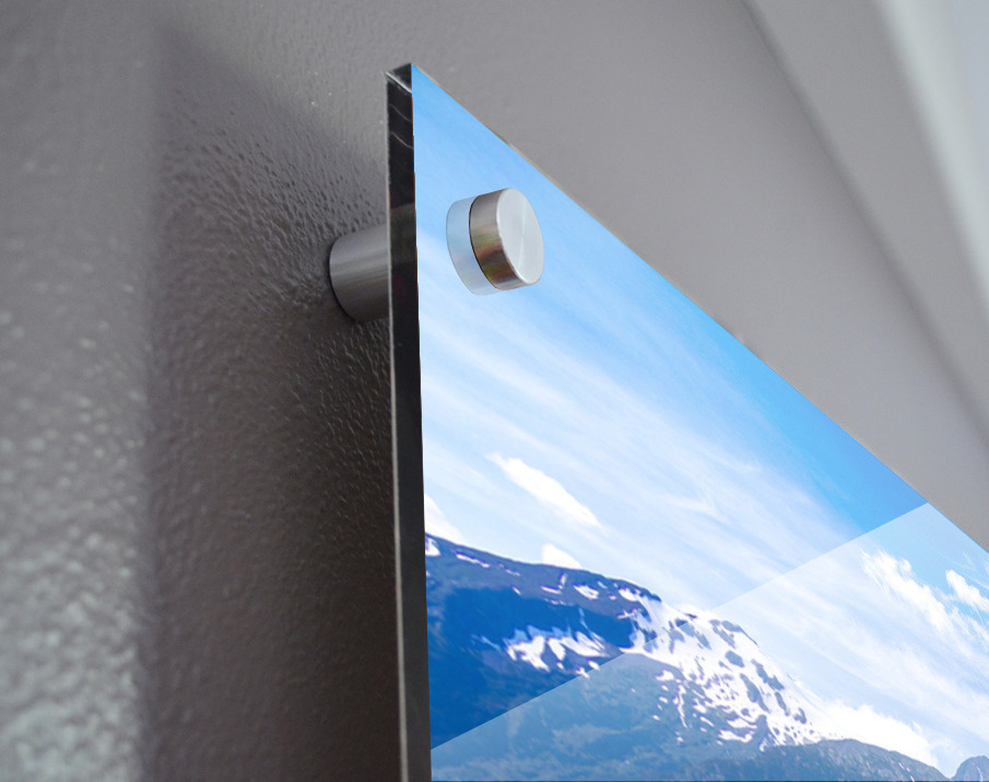 Printed to the edge - Ready to hang - provided with 4 premium polished aluminum stand off ( wall screws and mounting hardware provided )
