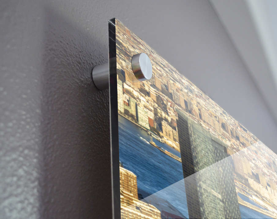 Printed to the edge - Ready to hang - provided with 4 premium polished aluminum stand off ( wall screws and mounting hardware provided )