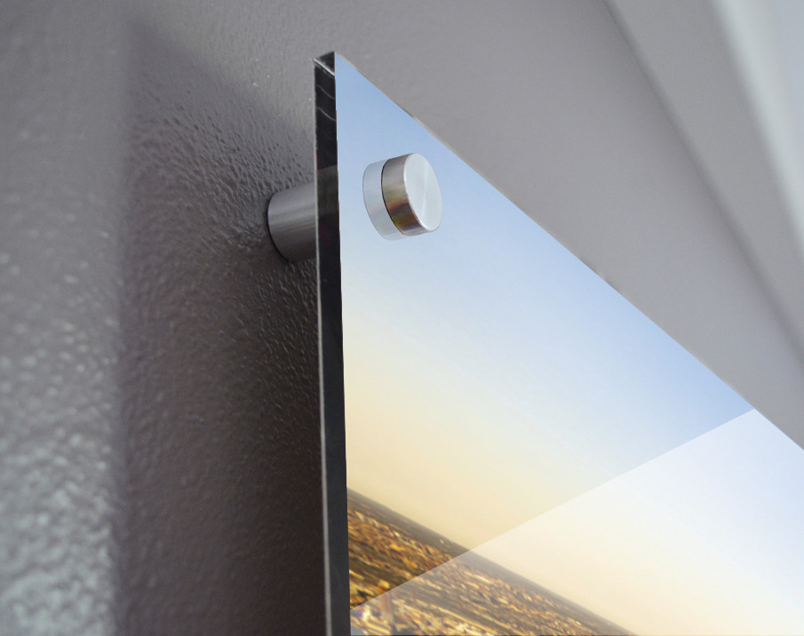 Printed to the edge - Ready to hang - provided with 4 premium polished aluminum stand off ( wall screws and mounting hardware provided )